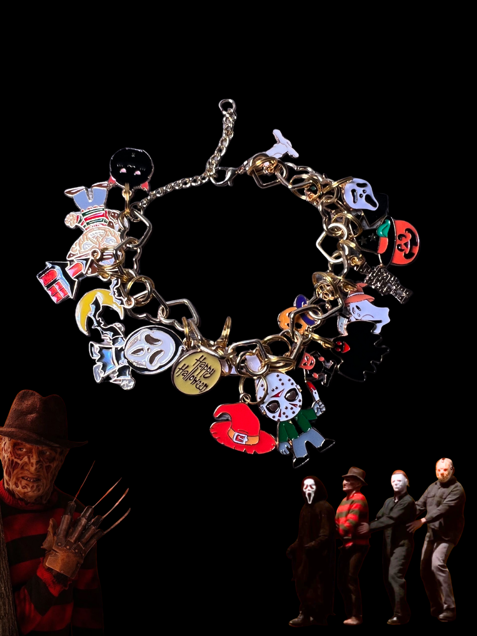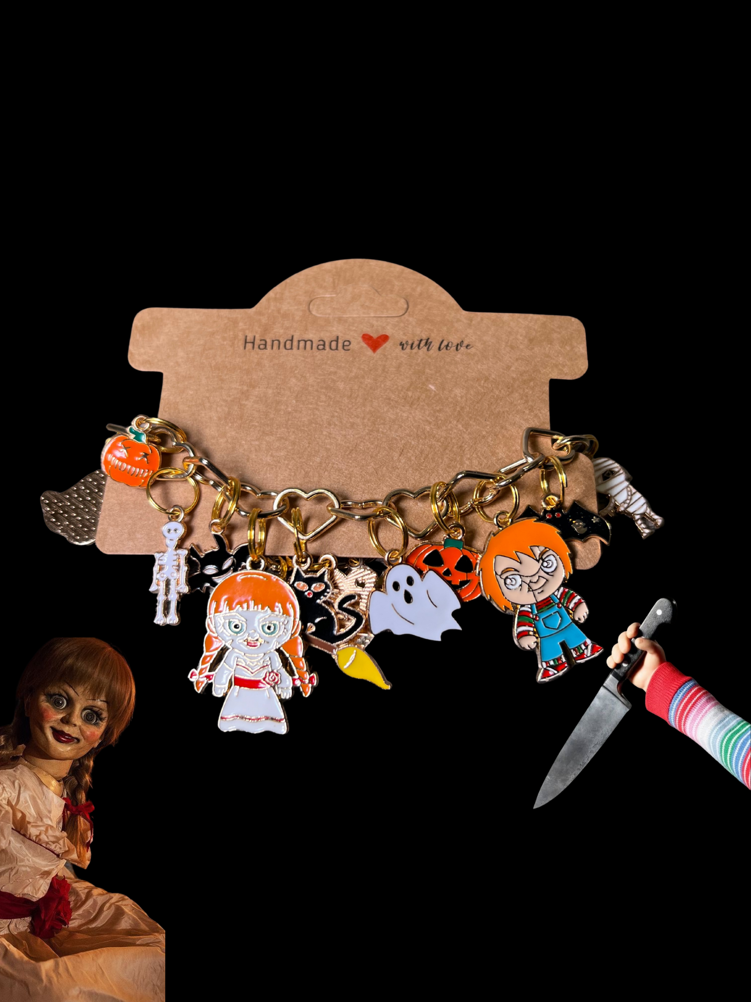 Gold Halloween Heart Chain Bracelets